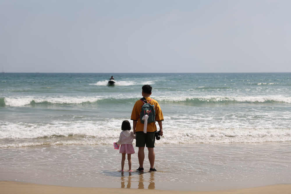 首頁 > 萬寧石梅灣:游客踏浪看海樂享假期