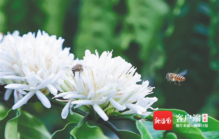 初春,萬寧興隆的咖啡園里咖啡花盛開,展現(xiàn)給人們一卷高潔清雅、意味雋永的獨(dú)特春色。順著曲徑,步入咖啡林,猶如置身夢(mèng)幻般的仙境。嬌小玲瓏咖啡花浮在枝頭,一枝枝,一簇簇,一團(tuán)團(tuán),猶如棉花糖般誘人。