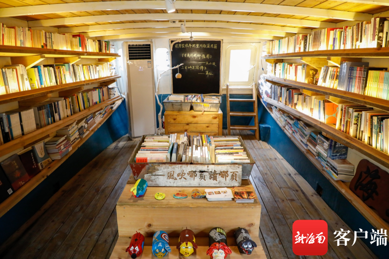 在漁村碼頭,紅白相間的燈塔尤為亮眼,隨手一拍便是大片。沿著碼頭走,就能看到西島網紅“海上書屋”,白藍色彩繪將舊漁船改造為文藝書屋,落座其中,隨手捧起一本書,風吹哪頁讀哪頁,愜意非常。