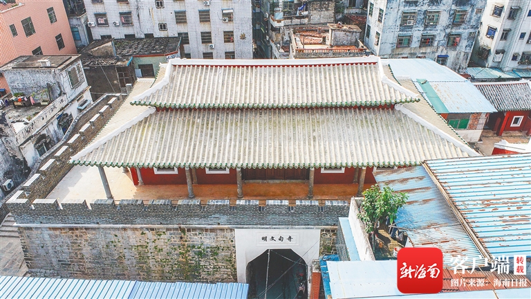 鼓樓的西邊和東邊,分別是文廟與瓊臺書院,這代表了海南文脈,尤其是已經有三百年歷史的瓊臺書院,更是海南人文的淵藪,是海南人心中文化的圣地。粵劇和瓊劇都有一出《搜書院》,搜的就是這座瓊臺書院,當時的山長謝寶為了維護自己的學生與鎮臺府丫鬟真摯的愛情,在書院里與鎮臺大人斗智斗勇,其故事被千古傳頌。