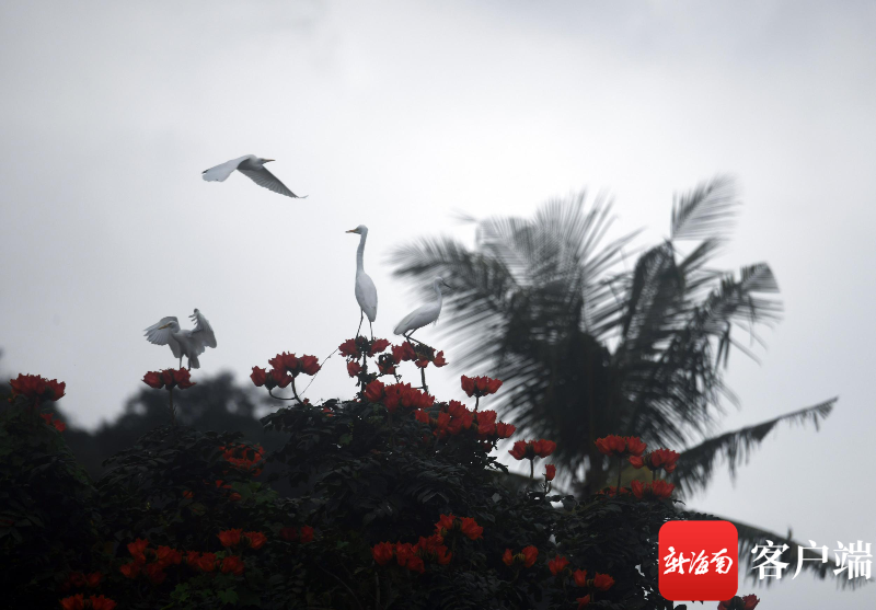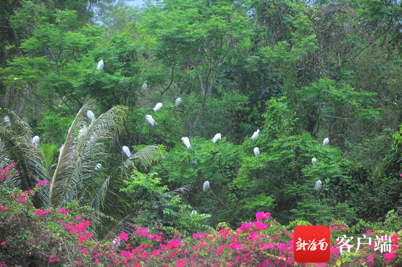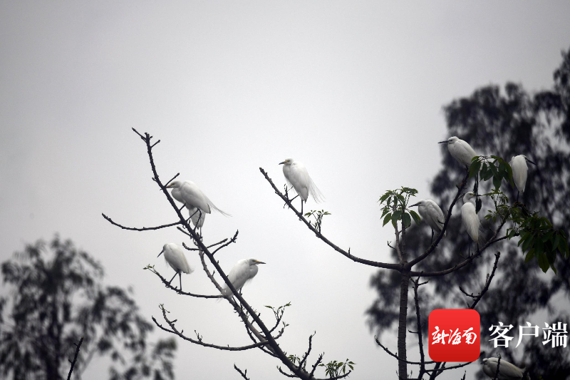 3月23日,三亞學(xué)院白鷺溪畔,白鷺在樹上棲息。記者 沙曉峰 攝