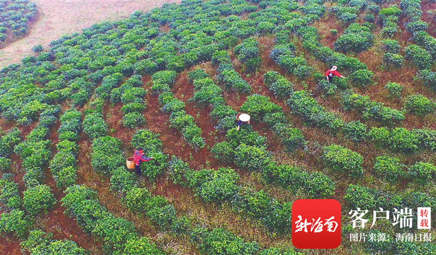 “十里寒山路,香風正采茶。”清明前后正值春暖花開之際。在海南,各大茶園一派忙碌景象。翠綠青山下,清新茶園間,十指翻飛的采茶人與盎然綠意一同構成了生機勃勃的瓊島春景。