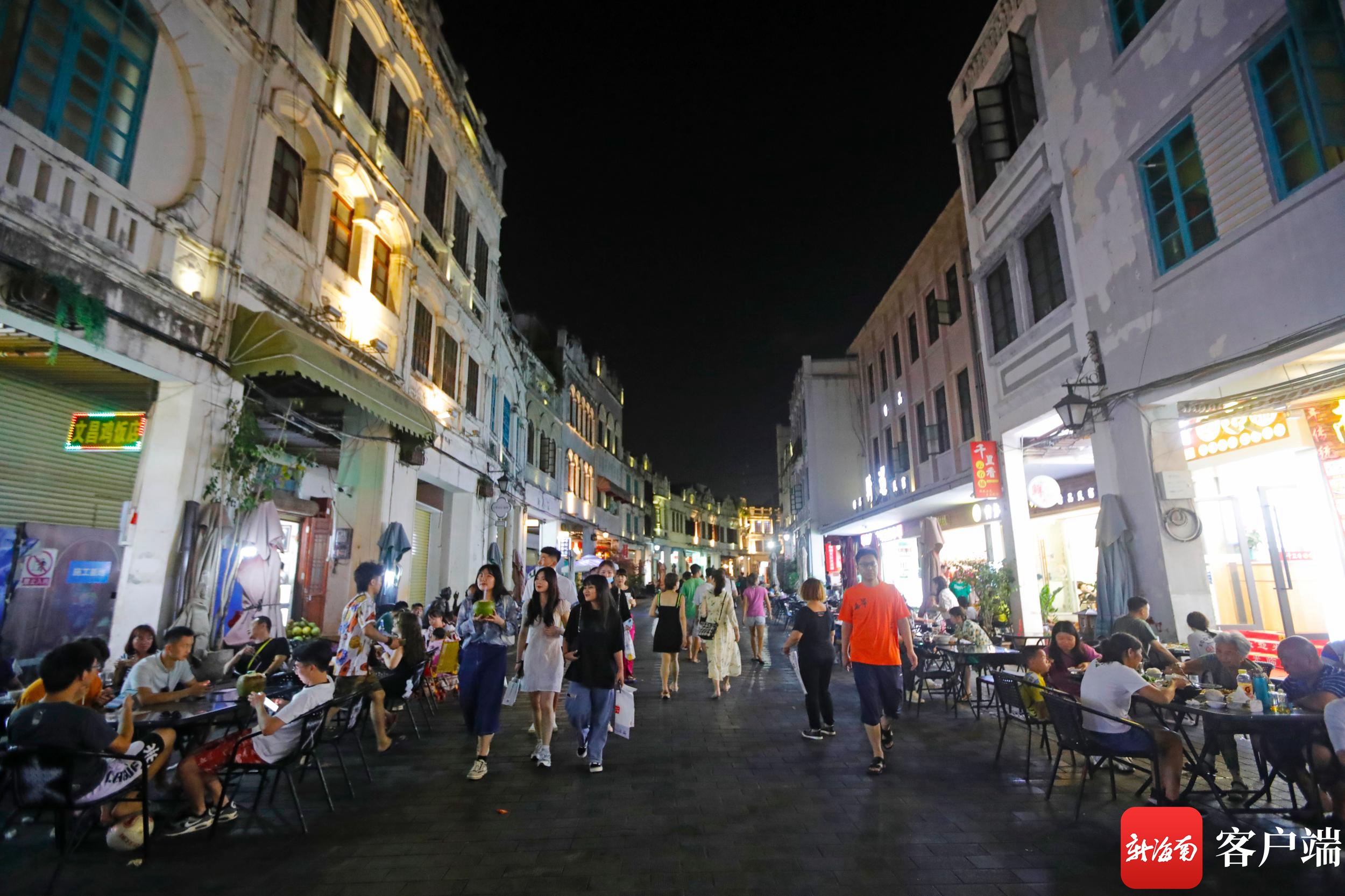 4月3日晚,海口騎樓老街熱鬧非凡。記者 汪承賢 攝