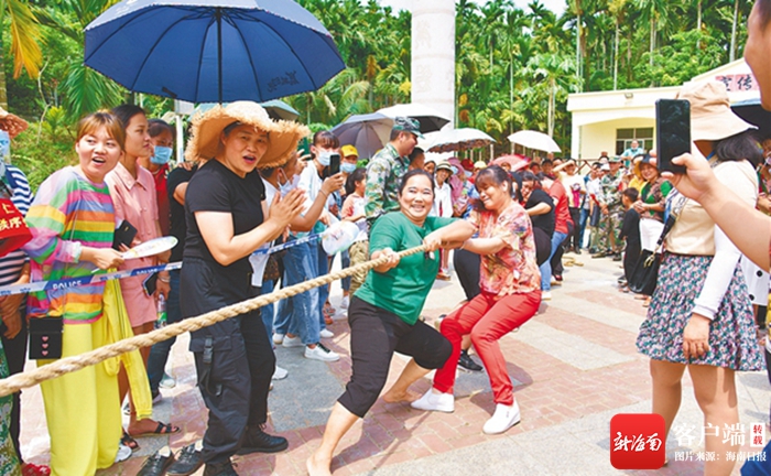 4月14日,澄邁縣仁興鎮新興苗村舉行慶祝“三月三”拔河比賽等趣味游戲活動。通訊員 張仁圣 攝