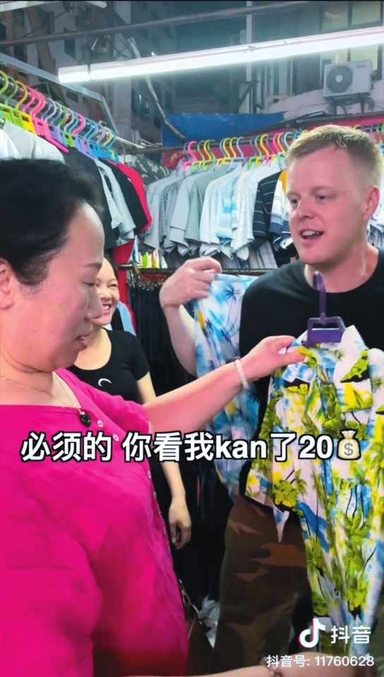 這段對白是來到中國第12個年頭的外國女婿“鐵蛋兒Tyler”在三亞街頭操著一口麻溜普通話在和老板娘砍價的經過,“鐵蛋兒Tyler”的“懂行”讓見慣外國人的老板娘也忍不住開懷大笑,爽快地“被砍”了20元。