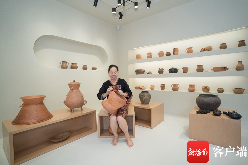 錦苑,工作人員在整理展示的黎錦服裝。特派記者 李昊 攝
