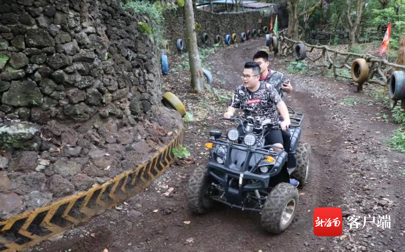 叢林穿越、玻璃滑道、玻璃棧道都是游客熱捧的旅游項目。“玻璃滑道驚險刺激,小朋友很喜歡。”來自海口的林女士告訴記者,該景區有不少適合老人、小孩的游玩項目,趁著假期帶著家人來旅游,感覺十分愜意。“從高空滑下來,感覺有飛的感覺,很不錯。”林女士說。