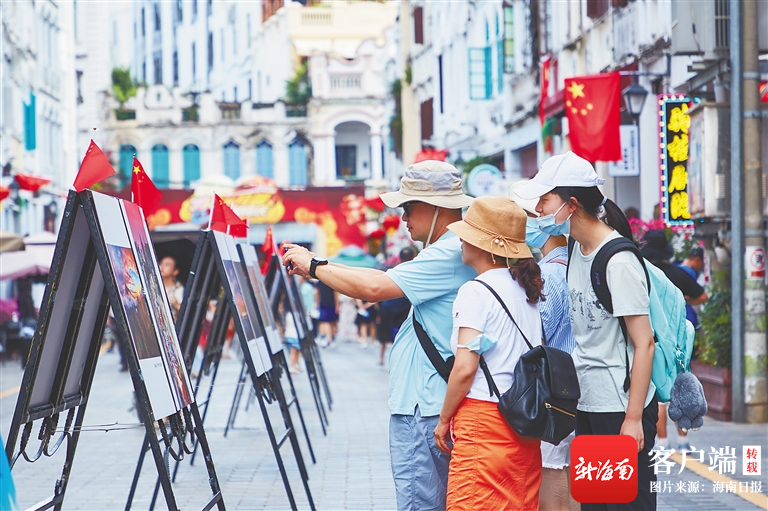 游客在騎樓老街拍照留念。海南日報記者 封爍 攝