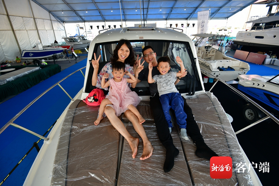 一家人在游艇上合影。記者 陳衛東攝