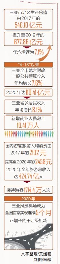 數據可為其佐證:2020年,三亞接待過夜游客1714.4萬人次,過夜旅游總收入424.75億元,較1987年均成百倍增長;三亞鳳凰機場成為全國首家實現連續5個月正增長的千萬級機場,三亞市以占全省三分之一的接待過夜游客,實現占全省一半的旅游總收入和占全省60%以上的旅游業增加值。