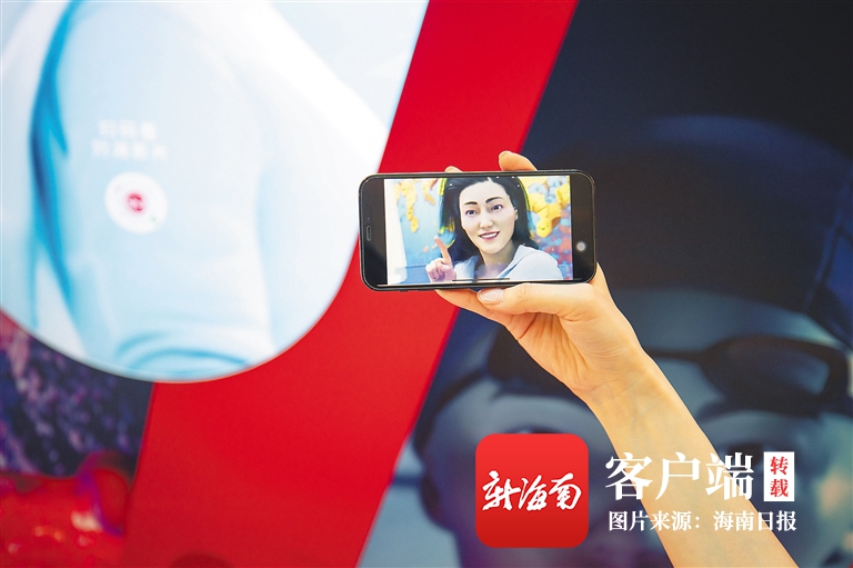 游客在SK-II快閃店打開小程序,進入動畫世界。 (三亞國際免稅城供圖)