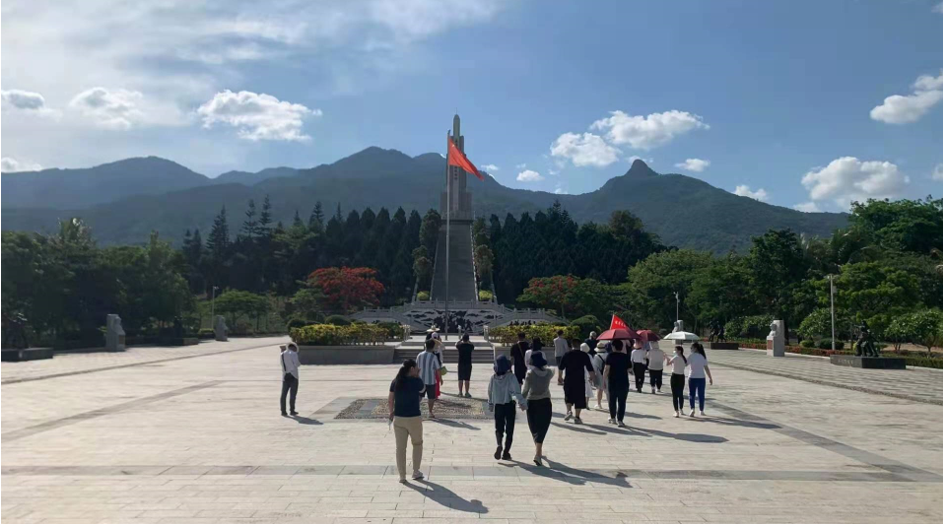 巍巍青山,銘記不朽英魂。一條公路在兩旁綠韻汩汩的山林簇擁下,向著母瑞山最高峰南牛嶺的山腳延伸,采訪團沿路到達了母瑞山革命根據地紀念園,這里是瓊崖縱隊的根據地,被譽為“瓊崖革命的搖籃”。1928年3月和1932年8月,國民黨反動派發動“圍剿”,在瓊崖革命領導人的帶領下,兩次成功保留革命火種,創造了海南革命“二十三”年紅旗不倒的奇跡。