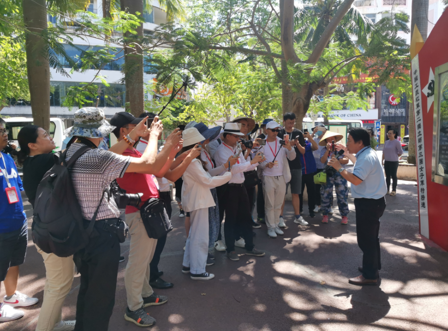 采訪團聆聽紅色娘子軍龐瓊花后人龐啟江介紹