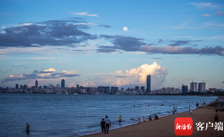5月25日,傍晚時分,一輪明月在海口的天空中升起。記者 劉洋攝