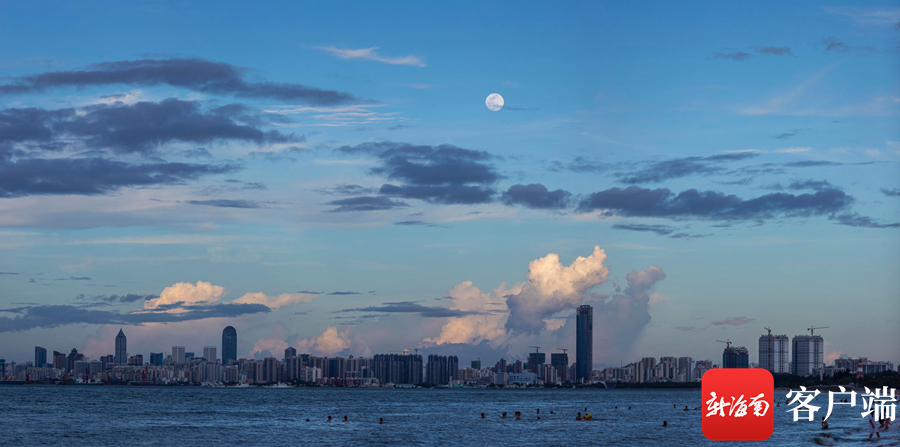 海口的天空中升起的一輪明月。記者 劉洋攝