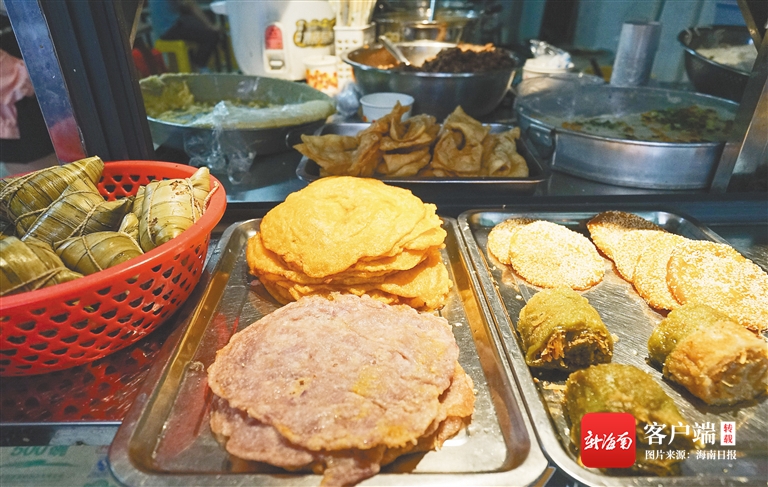 “老板,來一碗黑芝麻糊。”“三碗雞屎藤,打包。”……位于群眾街47號的海南特色小吃店鋪,食客絡繹不絕。十余平方米的店面中,擺著二三十種海南特色小吃,既有糖水類,也有糕點類,五顏六色,讓人目不暇接。