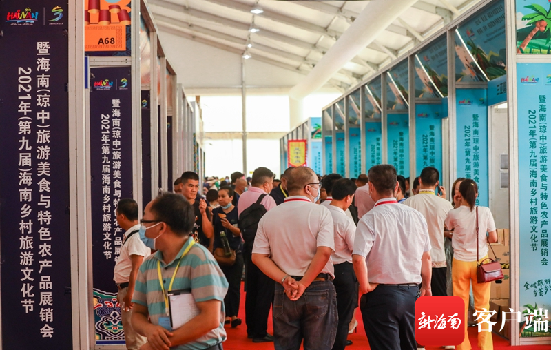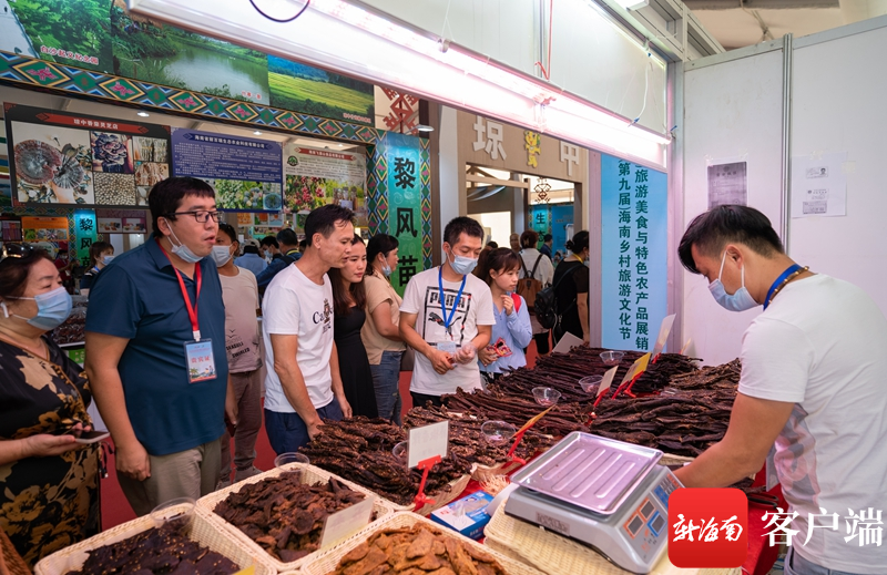 在開幕式現場,海南(瓊中)旅游美食與特色農產品展銷會作為活動一部分,展示了瓊中及海南各市縣特色鄉村旅游景區、景點、鄉村特色食品、特色旅游商品、助農產品、土特產、海南一鎮一品農副產品;活動通過展示、品嘗、銷售等形式展現海南旅游美食和農產品食材。