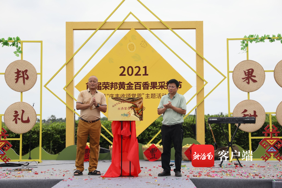 開幕式現場發布了榮邦黃金百香果的全新包裝禮盒,海南省農業電子商務行業協會百香果分會也在現場成立揭牌。