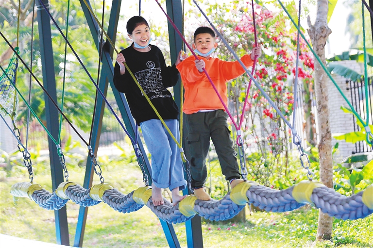 儋州的海南熱帶植物園景區(qū),雨林穿越等項目吸引了市民游客游玩。海南日報記者 陳元才 攝