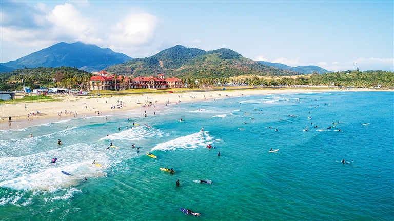 眾多游客在萬寧日月灣沖浪。海南日報記者 袁琛 攝