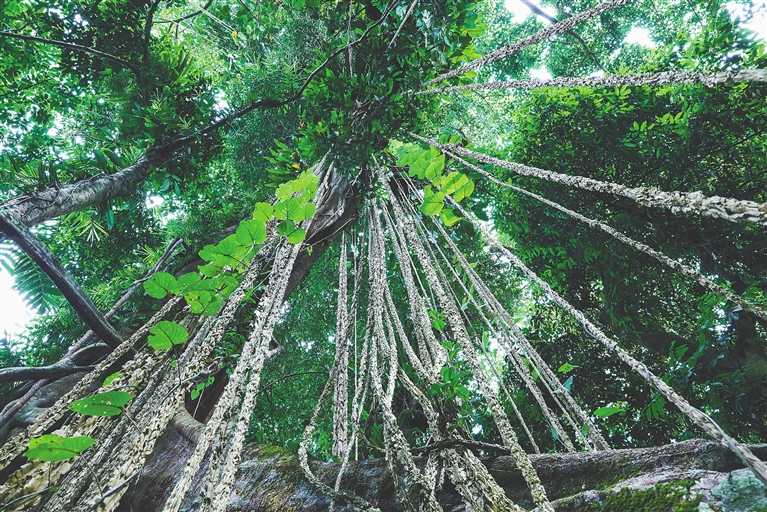 百花嶺熱帶雨林文化旅游區(qū),古樹與藤芋結(jié)合成獨特景觀。海南日報記者 李天平 攝