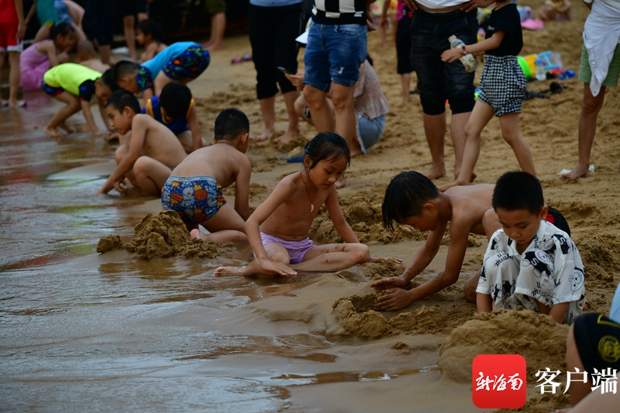 組圖 | 現場直擊!海口市民游客假日海灘花式“洗龍水”