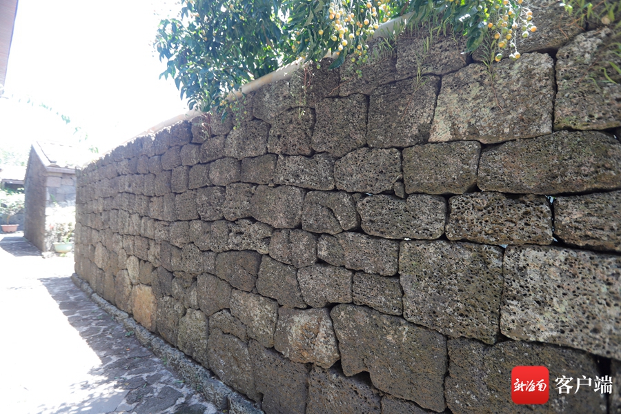 古老的火山巖石凝固了百年時光,圍墻內別有洞天。記者 汪承賢 攝