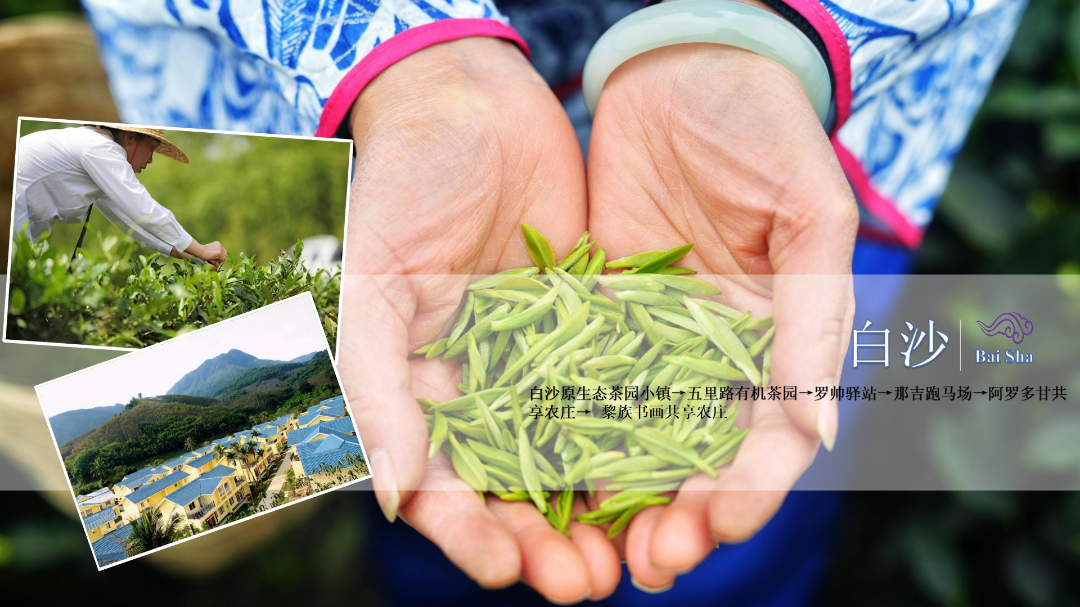 白沙原生態茶園小鎮→五里路有機茶園→羅帥驛站→那吉跑馬場→阿羅多甘共享農莊→黎族書畫共享農莊