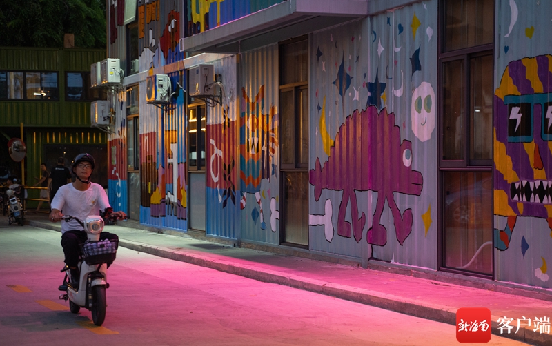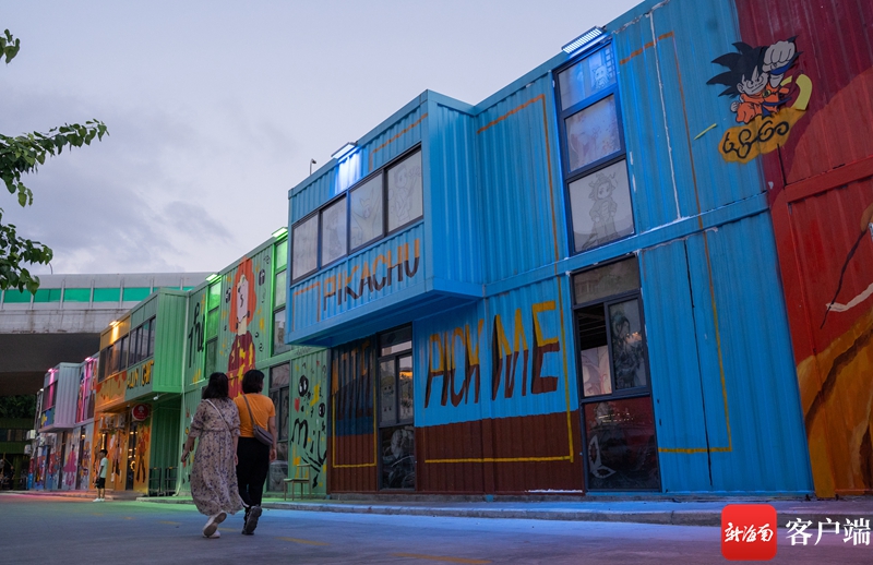 7月12日傍晚,記者來到位于海口市海秀中路的網紅打卡點——海口僑中里文化街箱集市。這條以動漫元素為主題的街區,主要設施設備全部采用集裝箱設計,通過噴繪等方式將集裝箱打造成為富有動漫元素的空間,吸引眾多市民游客前來打卡。