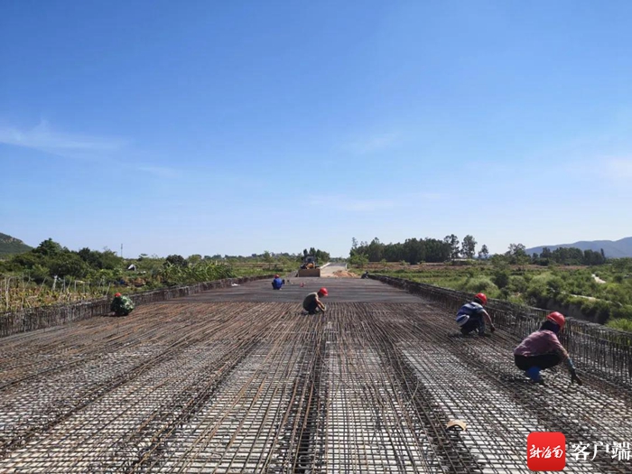 項目部分路段工人們正在抓緊時間攤鋪瀝青、綁扎橋梁鋼筋。通訊員 黃海玲 攝
