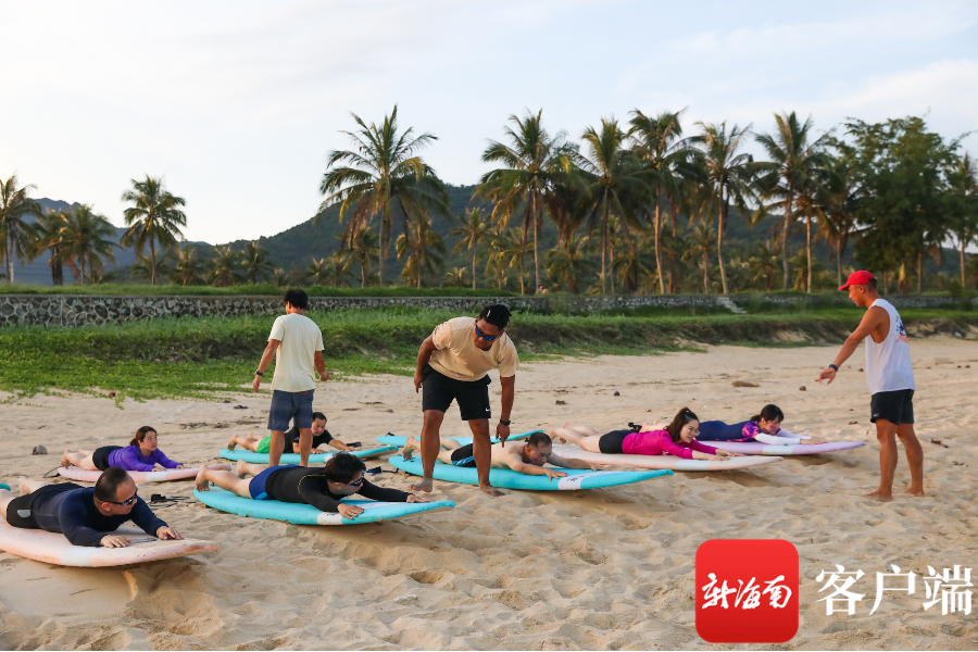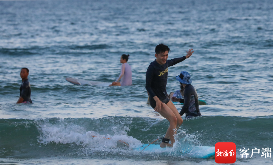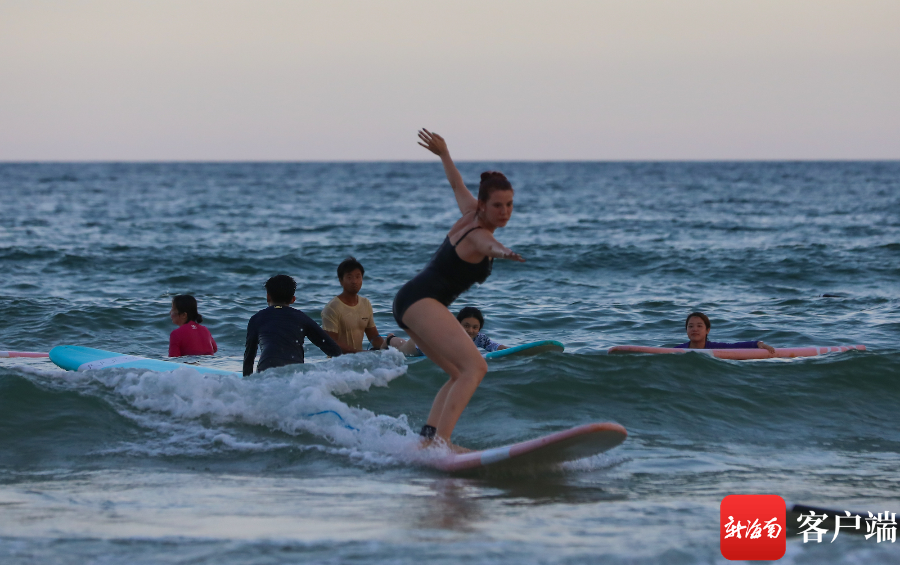 新海南客戶端、南海網、南國都市報7月17日消息(記者 李昊)站在海邊,放眼望去,好浪連綿。上百只沖浪板隨著波濤起起伏伏,而沙灘上,游人更密?;驔_浪,或觀看,或練習,整個海灣歡聲笑語不斷,浪尖起舞一定有著不一樣的樂趣。7月17日,參加“海南奮進 世界共享”——2021海南自由貿易港建設總體方案發布一周年全媒體海南行暨交流推介活動的嘉賓們來到萬寧日月灣,近距離感受因沖浪火爆出圈的魅力海灣。