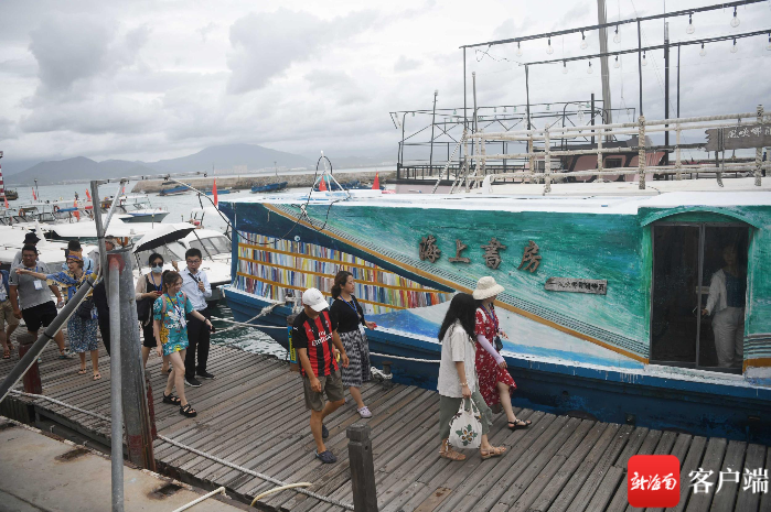 7月22日,參加“‘海南奮進 世界共享’——2021海南自貿港建設總體方案發布一周年全媒體海南行”活動的嘉賓來到海上書屋參觀。記者 沙曉峰攝