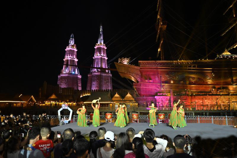 此次活動(dòng)將奇幻樂園“絲路探險(xiǎn)區(qū)域”進(jìn)行全新包裝,通過聲、光、電等科技手段,打造光影幻境。以“唐宮宴舞”“敦煌飛天”等3小時(shí)不間斷的沉浸式表演重現(xiàn)大唐盛世。此外,還有“非遺火花秀”表演和水幕投影秀、特效電影娛樂項(xiàng)目、美食文創(chuàng)商品等助陣,打造多元素、全業(yè)態(tài)海口夜游新地標(biāo)。 海口日?qǐng)?bào)記者 石中華 攝