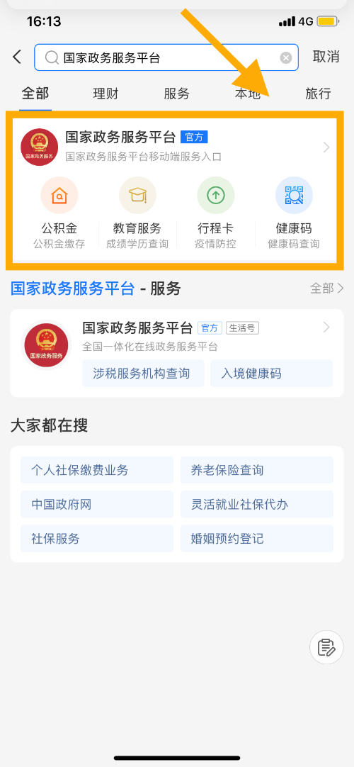 1、在微信搜索“國家政務(wù)服務(wù)平臺”小程序或支付寶搜索“國家政務(wù)服務(wù)平臺”,點(diǎn)擊進(jìn)入平臺首頁。