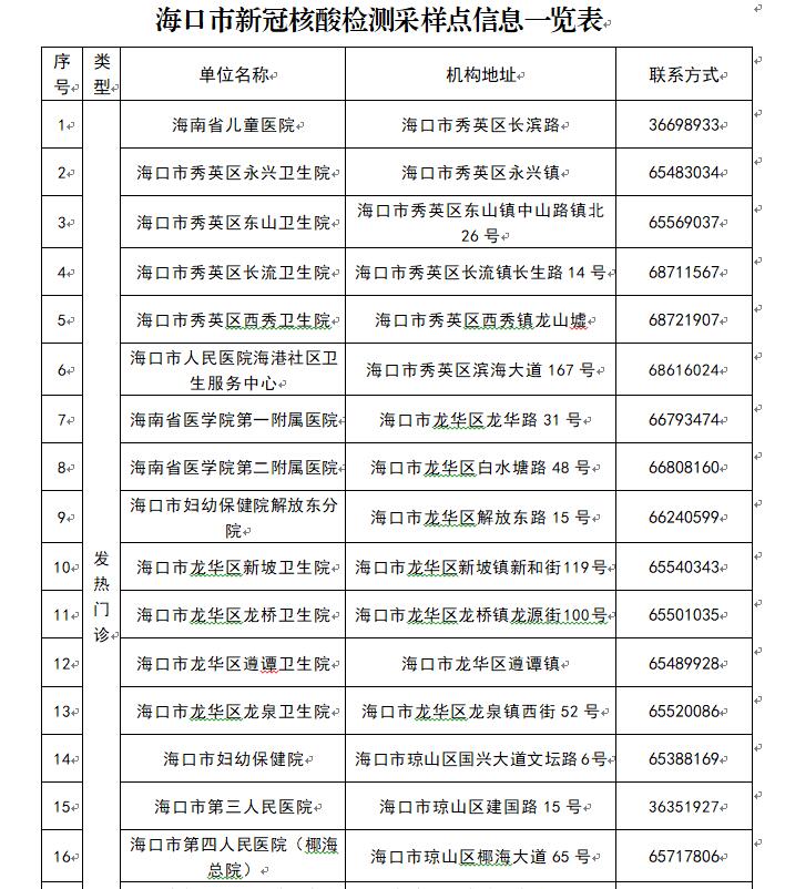 截至目前,海口市設(shè)置了33個核酸檢測采樣地點(diǎn),??谑忻窨梢跃徒蓸狱c(diǎn)采樣并進(jìn)行核酸檢測。