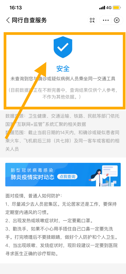 2、在首頁點(diǎn)擊進(jìn)入“同行密接人員自查”。