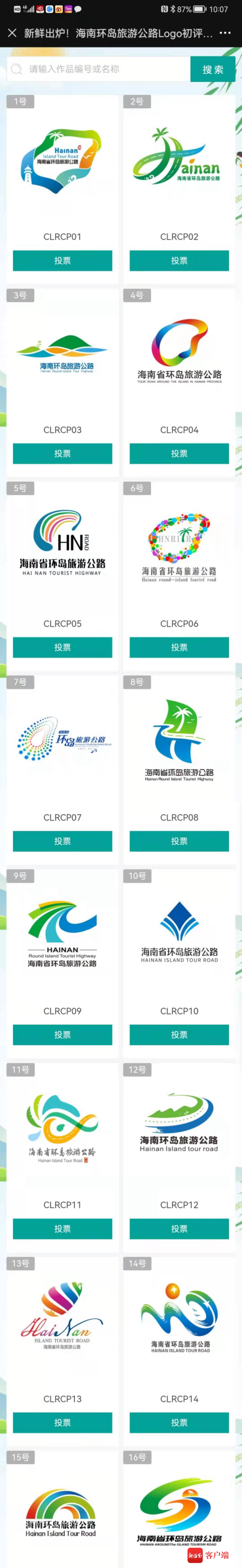 新海南客戶端、南海網、南國都市報8月6日消息(記者 王小暢)6日,記者從海南交控獲悉,海南省環島旅游公路Logo初評結果新鮮出爐,50幅優秀的設計作品脫穎而出,正在進行公眾評選投票。