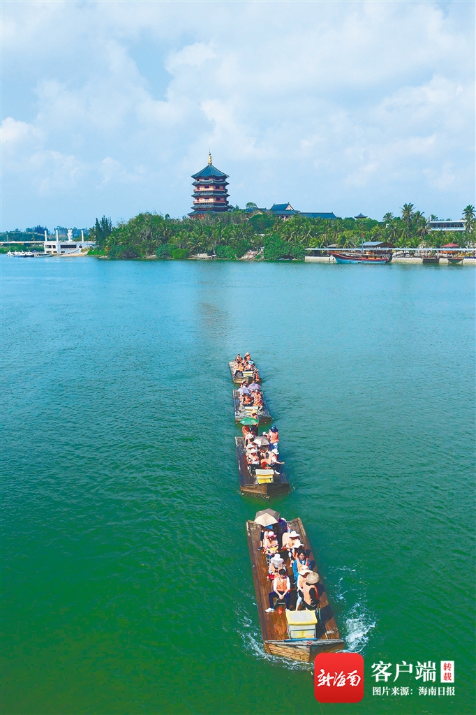 游客在瓊海市博鰲鎮萬泉河上漂流。海南日報記者 張茂 攝