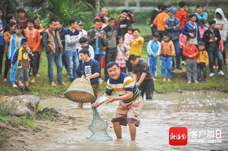 文昌市潭牛鎮大廟村,游客在體驗捕魚。海南日報記者 袁琛 攝
