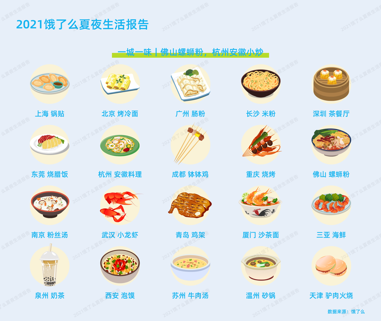 冰品和小龍蝦依舊是今年夏季最熱門的夜宵品類。《報告》顯示,入夏以來的深夜時段(21:00-次日6:00),餓了么平臺上飲料冰品和小龍蝦的訂單量環比分別增長4倍和1倍。同時,隨著越來越多年輕人自律意識和健康生活觀念的增強,水果撈、果切和沙拉等健康夜宵也開始在今夏走紅,訂單量增幅均在50%以上。