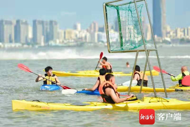 本次皮艇球體驗日活動十分豐富,包括現場教學、表演賽、水上體驗和互動游戲等。來自哈爾濱的游客吳乙成參加了皮艇球體驗活動。他說,他們一家特意來海南感受大海、陽光和沙灘,到海口西海岸假日海灘游玩正好碰上這個活動。“皮艇球這個項目以前從來沒見過,很高興能和孩子一起體驗這項新運動,可以讓孩子勇于接受挑戰(zhàn),感受團隊合作精神。”