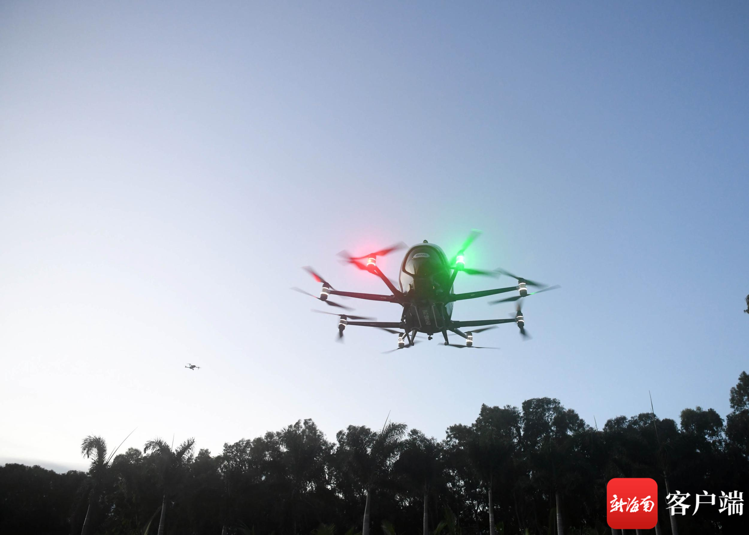 一架“無人駕駛”載人飛行器在大小洞天景區升空。記者 沙曉峰 攝