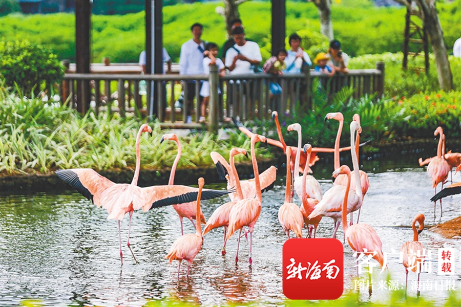 9月19日,游客在澄邁縣紅樹灣濕地公園游覽,了解火烈鳥的生活習性。海南日報記者 陳元才 攝