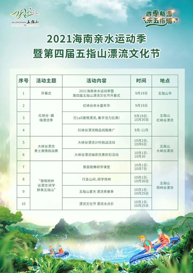 2021海南親水運動季暨第四屆五指山漂流文化節(jié)活動列表。