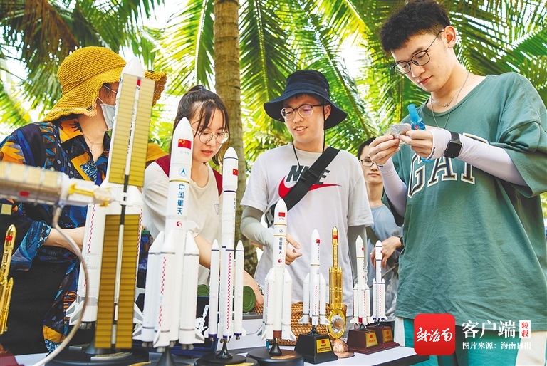 9月20日,搭載天舟三號(hào)貨運(yùn)飛船的長(zhǎng)征七號(hào)遙四運(yùn)載火箭在文昌航天發(fā)射場(chǎng)成功發(fā)射。當(dāng)天,在文昌市龍樓鎮(zhèn)淇水灣海灘展示銷售的長(zhǎng)征七號(hào)、長(zhǎng)征五號(hào),中國(guó)空間站主題模型、冰箱貼等文創(chuàng)用品,吸引了不少前來(lái)觀看火箭發(fā)射的市民游客。海南日?qǐng)?bào)記者 宋國(guó)強(qiáng) 攝
