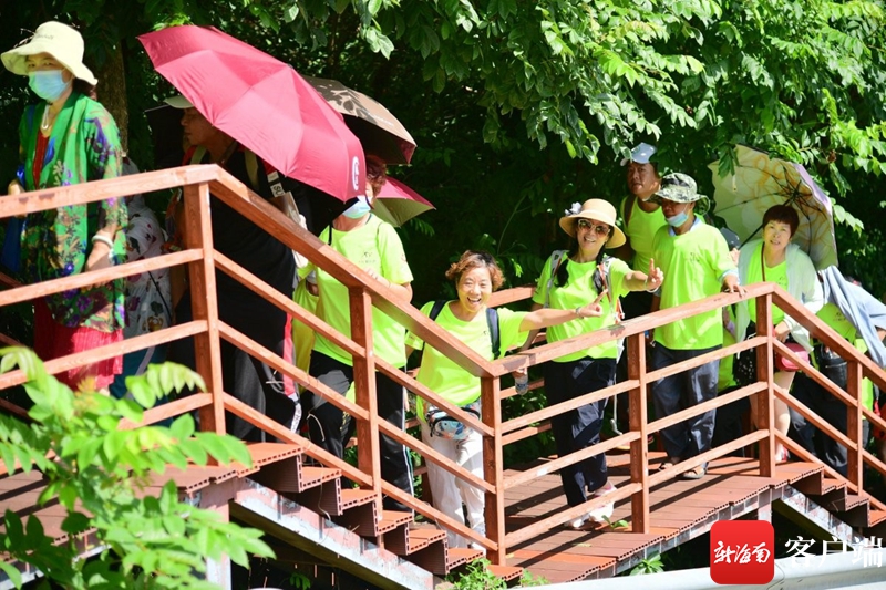 活動當天,游客們滿懷著激情來到了活動現場。在啟動儀式結束后,游客們便開始了紅角嶺登山觀海游3公里的徒步環節。徒步之路從一條紅角嶺棧道開始,棧道九拐十八彎,引領著每一位游客走進紅角嶺。游客在徒步的過程中,向外遠眺能看見不同海拔的香水灣海景,向下俯瞰能看見山腳下的風景。許多游客紛紛舉起手機和相機,拍下這一幕幕靚麗的風景,或是與友人合影,紀念下這美好的一刻。