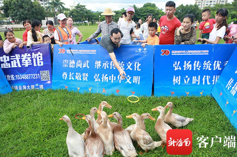 屯昌國慶游園的下半場活動“全民健身游園會”,設有套鴨子等趣味游戲。 資料圖