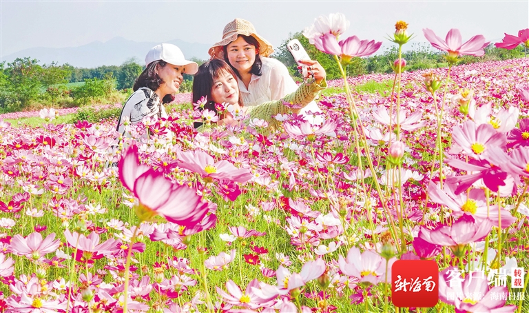 游客在昌江十月田鎮(zhèn)賞花海。海南日?qǐng)?bào)記者 陳元才 攝