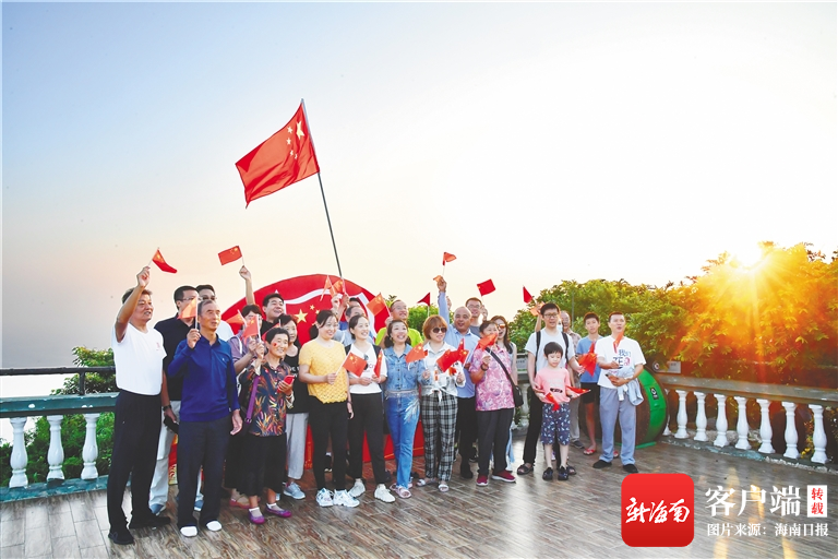 10月1日清晨,數十位游客來到位于文昌市龍樓鎮的銅鼓嶺景區,登上銅鼓嶺迎接國慶當天海南島的第一縷陽光。通訊員 潘高 攝