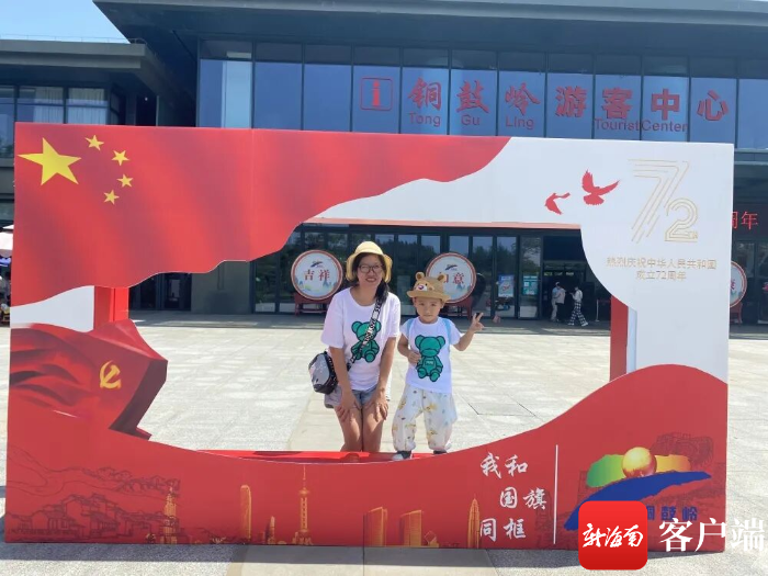 “每一個打卡展板都是一個流動的愛國畫框。這樣的設置讓游客在游覽山海美景的同時,能‘和國旗同框’,表達愛國之心,祝福祖國。”文昌市銅鼓嶺景區(qū)副總經(jīng)理薛斌說。